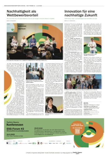 Das ESG-Forum, organisiert von den F.A.Z. Konferenzen und der Goethe-Universität Frankfurt, bietet eine Plattform für den Austausch innovativer und wirtschaftlich tragfähiger Nachhaltigkeitsstrategien. Ziel ist die Zusammenarbeit von Wirtschaft, Politik, Wissenschaft und Gesellschaft zur Entwicklung pragmatischer Lösungen, die sowohl ökologische als auch wirtschaftliche Vorteile bringen.
